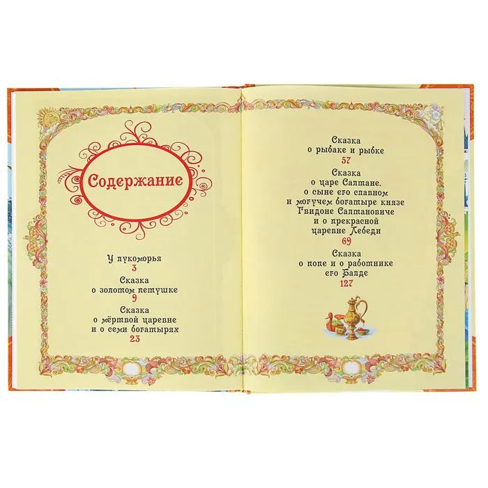 В книгу вошли: «Сказка о золотом петушке», «Сказка о мёртвой царевне и о семи богатырях», «Сказка о рыбаке и рыбке», «Сказка о царе Салтане», «У лукоморья».