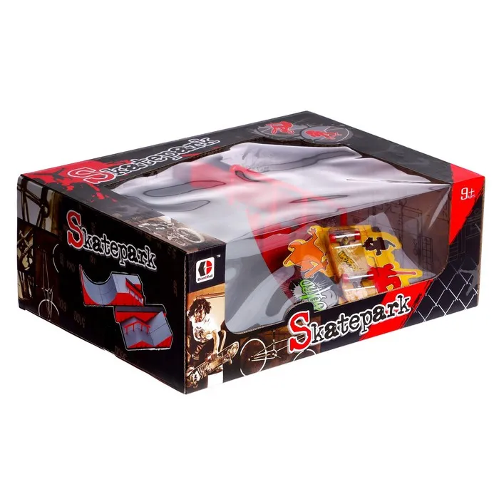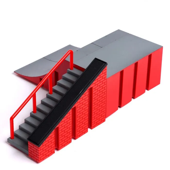 - Набор включает в себя комплекс с трамплином, лестницей и перилами, которые расширяют границы возможностей для трюков и маневров.