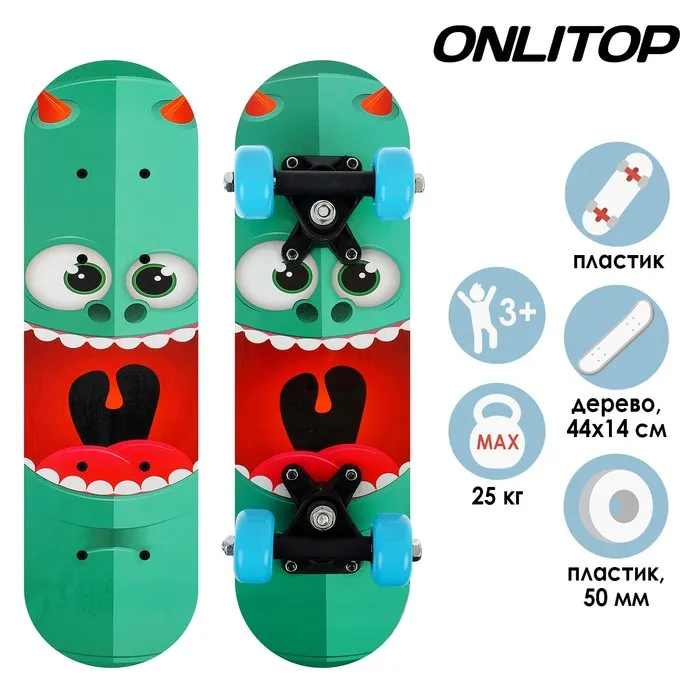 Скейтборд детский ONLITOP «Монстрик», 44×14 см, колёса PVC 50 мм, пластиковая рама — Характеристики