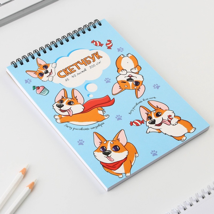 Скетчбук А5, 40 л 100 г/м2 «Корги» — Характеристики