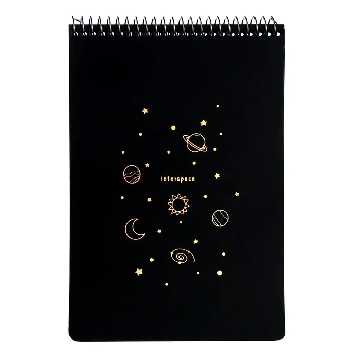 Скетчбук А5 «Планеты», 30 чёрных листов на гребне, твёрдая подложка, плотность 110 г/м², МИКС — Характеристики