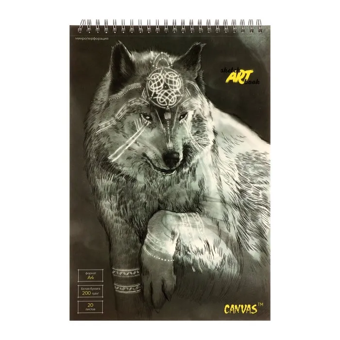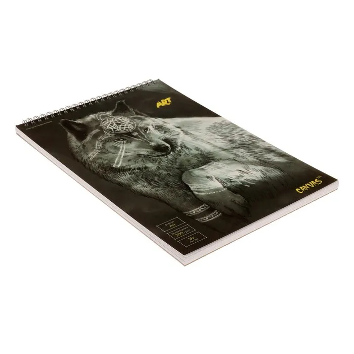 Скетчбук для акварели А5 «Волк», 20 листов на гребне, обложка мелованный картон, матовая ламинация, выборочный УФ-лак, блок 200 г/м² — Характеристики