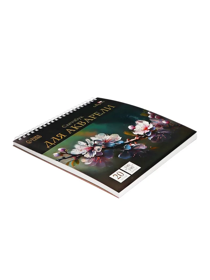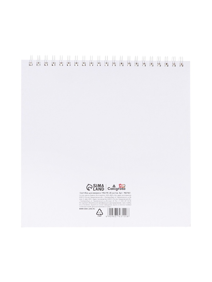 Скетчбук для акварели Calligrata TOP, 190×190 мм, 20 листов на гребне, обложка мелованный картон, жёсткая подложка, блок СПб ГОЗНАК 200 г/м² — Характеристики
