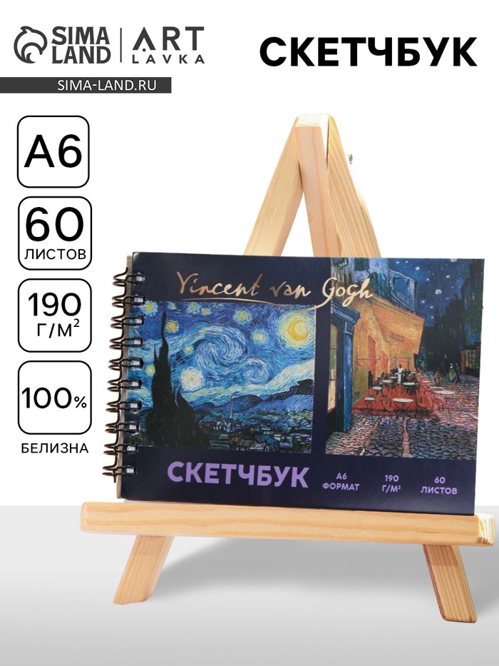 Скетчбук горизонтальный «Ван Гог», А6, 60 листов — Характеристики