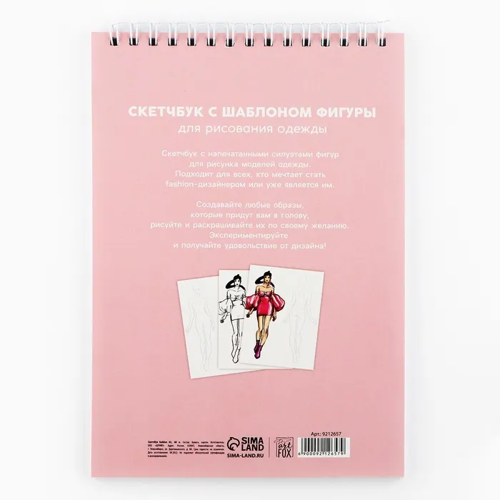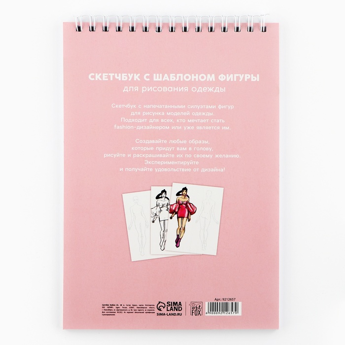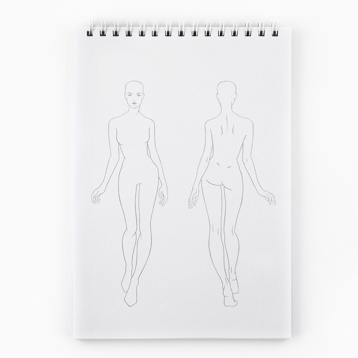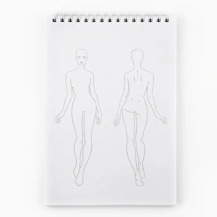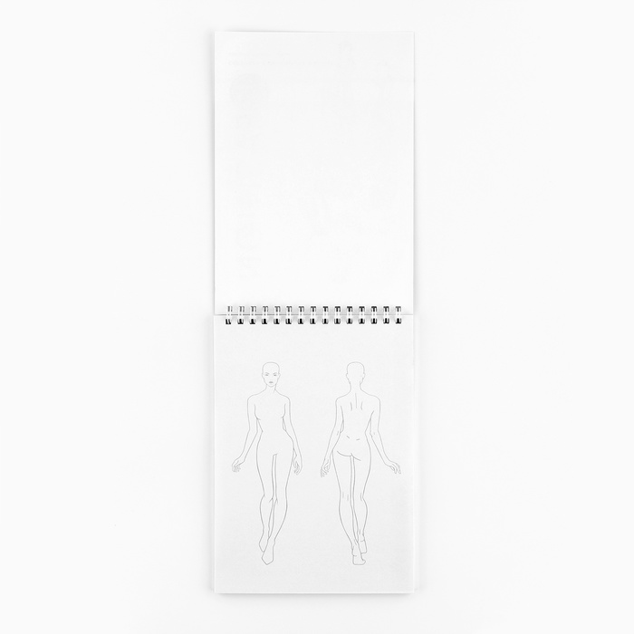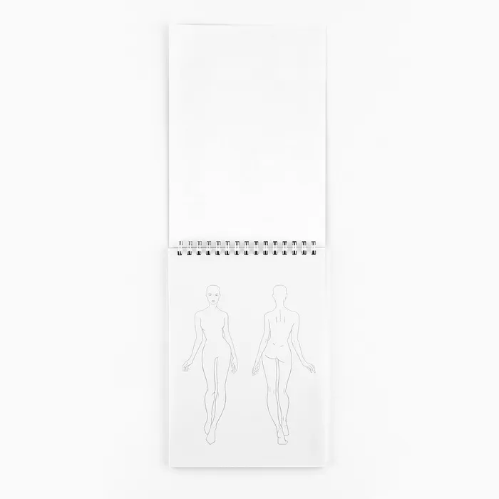 Внутри скетчбука 40 листов с силуэтом фигур для эскизов одежды. Плотность бумаги 100 г/м, печать на одной сторое листа,