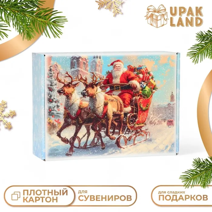 Складная новогодняя коробка размером 30,7 × 22 × 9,5 см — идеальный выбор для упаковки подарков и сувениров.