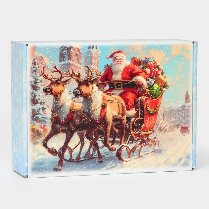 - Коробка оформлена в новогодней тематике, что создаёт атмосферу праздника и радости. Яркие краски и оригинальный дизайн сделают ваш подарок незабываемым и привлекательным.