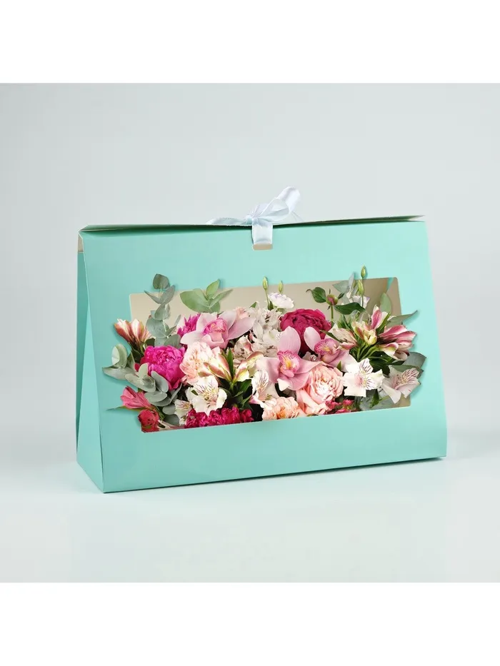 Складная коробка для цветов с окном Present, тиффани, 16×27×9 см — Характеристики