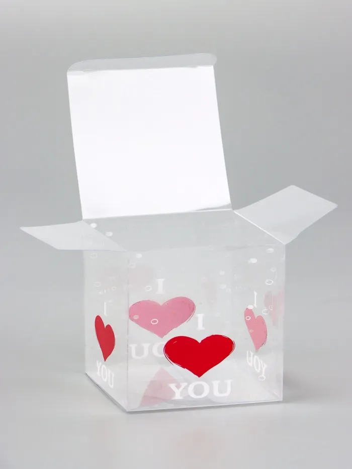 Складная коробка из PVC I love you, прозрачная с рисунком, 7×7×7 см 5 шт. — Характеристики