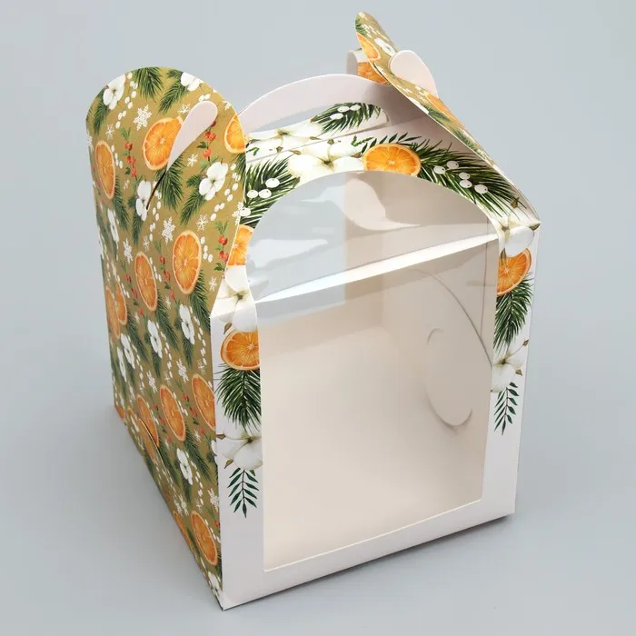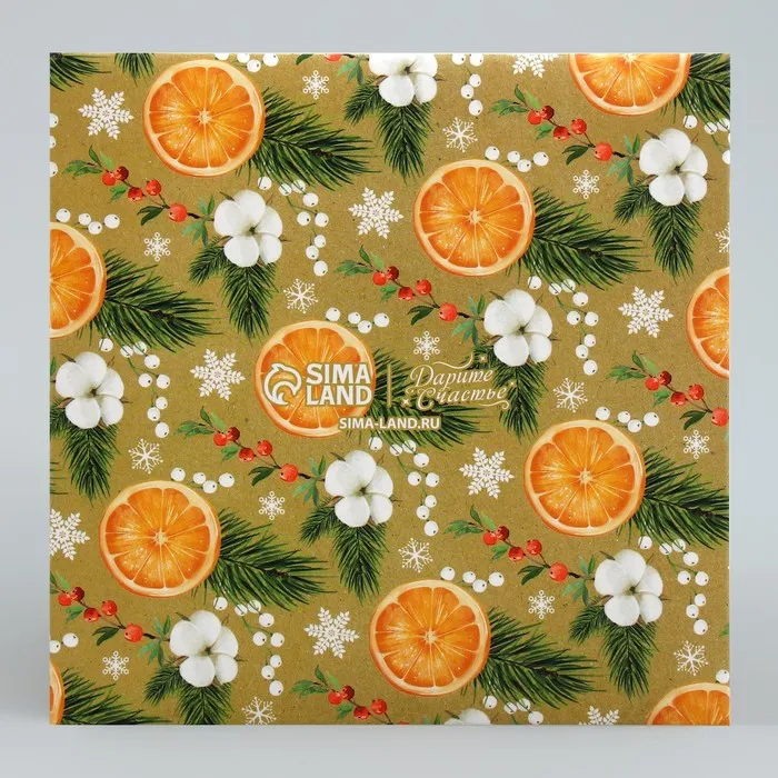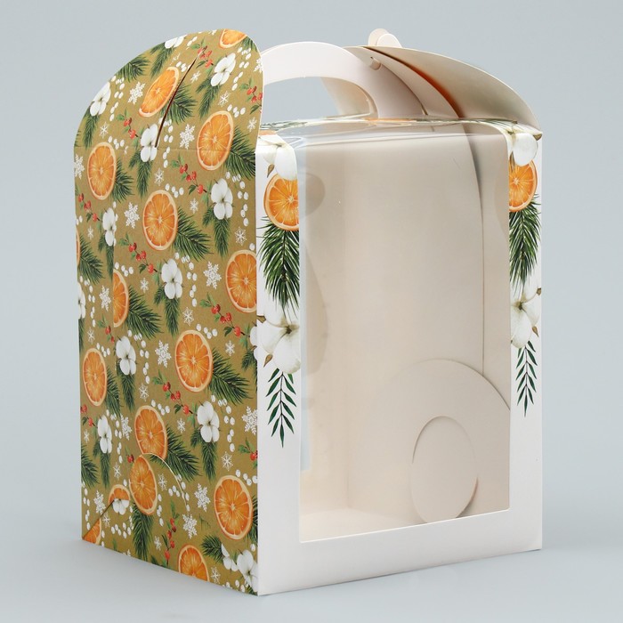 Складная коробка под маленький торт «Апельсины», 15 х 15 х 18 см, Новый год — Характеристики