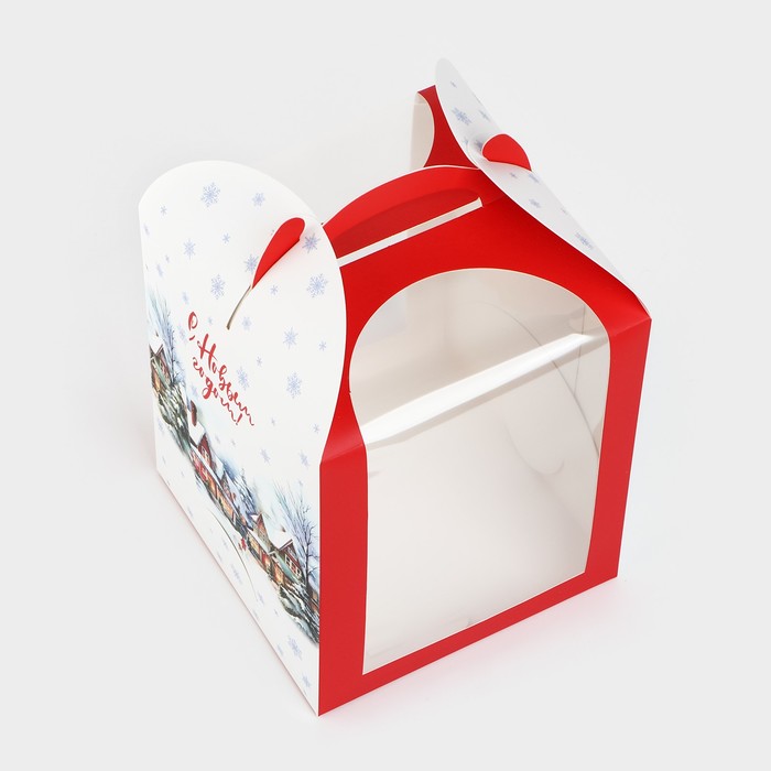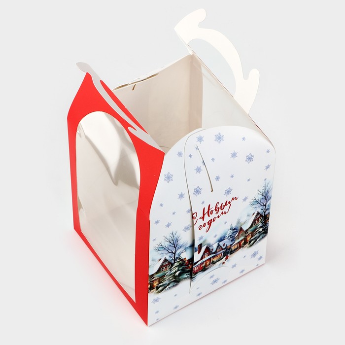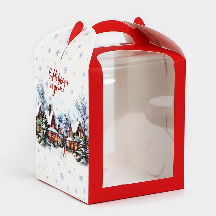 Складная коробка под маленький торт «Зимний город», 15 х 15 х 18 см