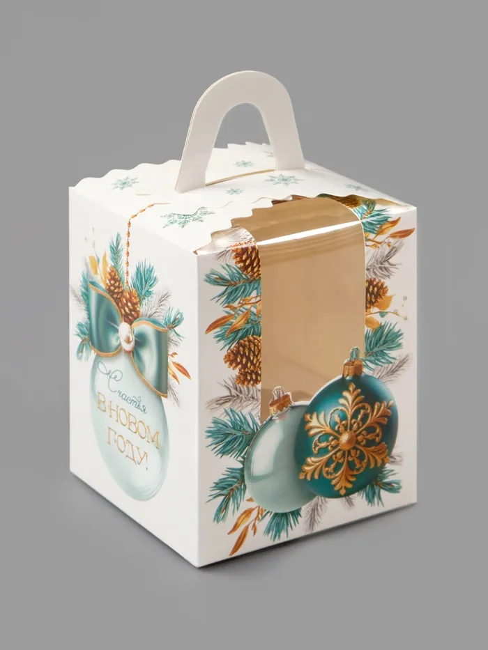 Складная коробка под один капкейк «Снежные шары», 9×9×11 см — Характеристики