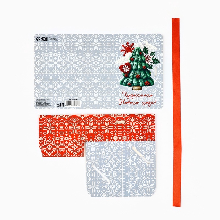 Подарочная коробка под бутылки «Сумка с ёлкой», бурая, сборная, 24×13.5×40 см