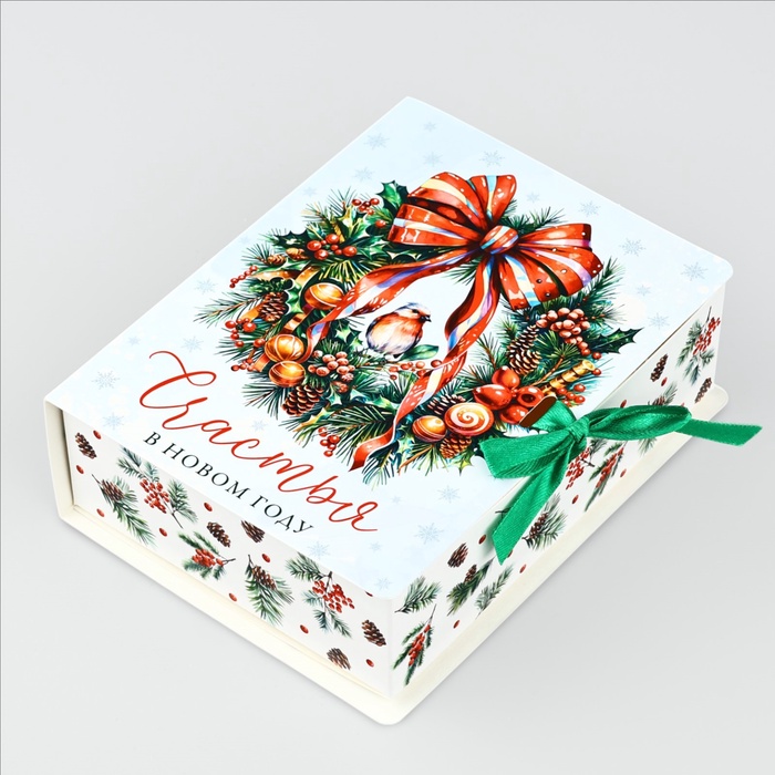 Складная новогодняя коробка-книга «Новогодний венок», 16,5 х 12,5 х 5 см — Характеристики