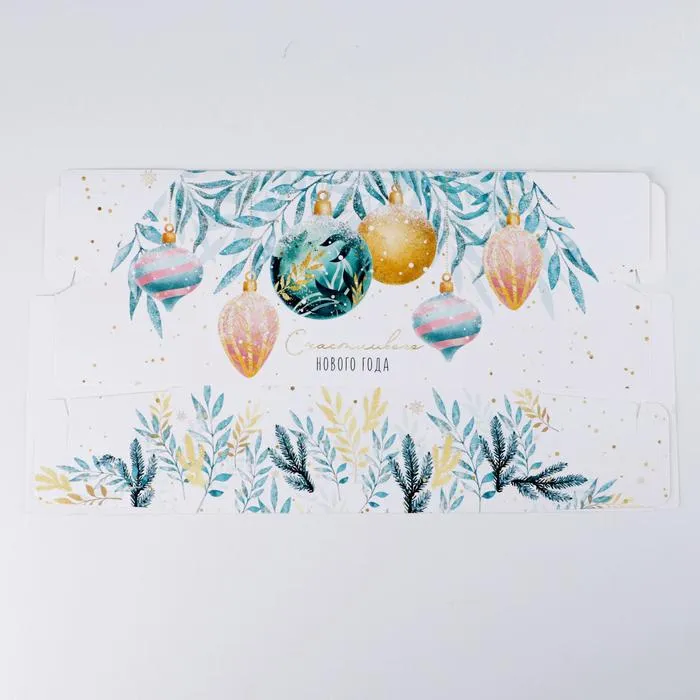 Складная новогодняя коробка-конфета «Акварельный новый год», 14×22×8 см — Характеристики