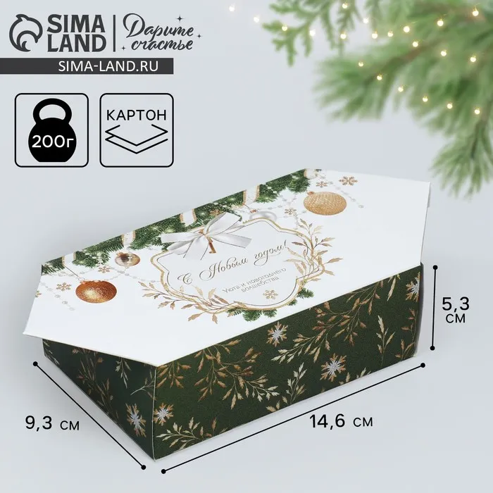 Складная новогодняя коробка-конфета «Золото», 9,3 х 14,6 х 5,3 см, Новый год — Характеристики
