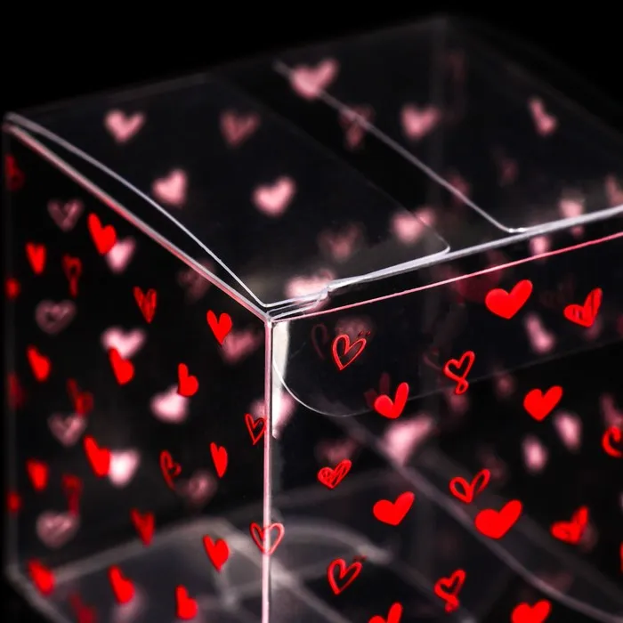Складная прозрачная коробка из PVC, для упаковки подарков, «Сердца», 5×5×5 см — Характеристики