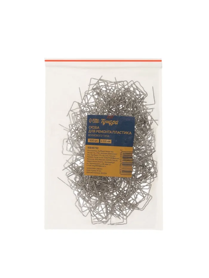 Скоба для ремонта пластика ТУНДРА, волнового типа, d=0.8 мм, 500 шт.