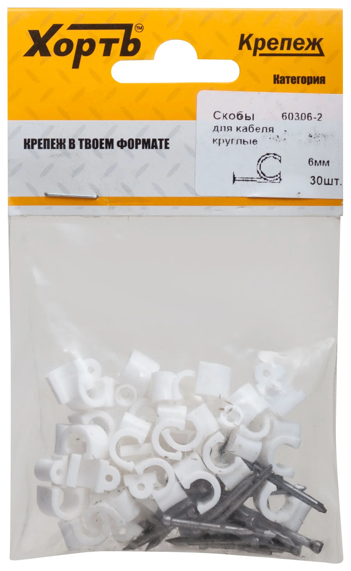 Круглые скобы 6 мм для кабеля, фасовка 30 шт.