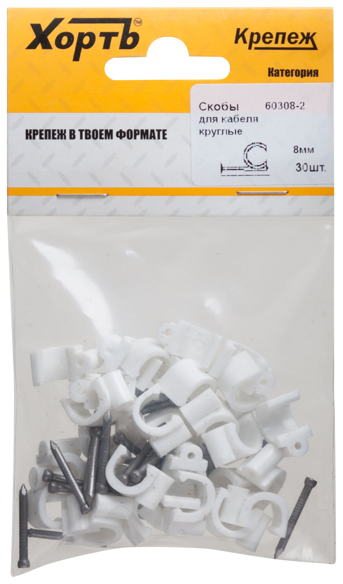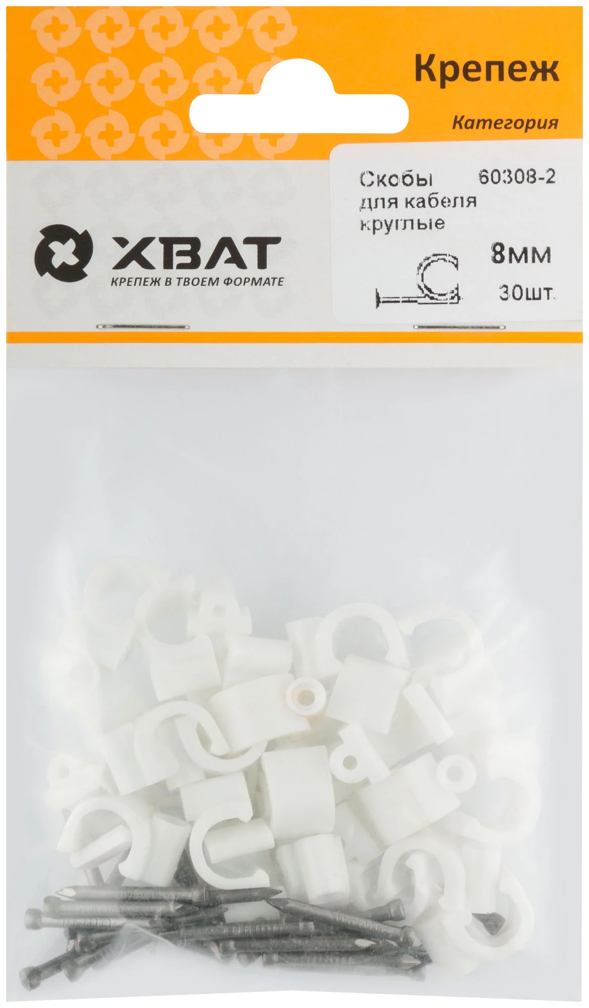 Круглые скобы 8 мм для кабеля, фасовка 30 шт., XВАТ