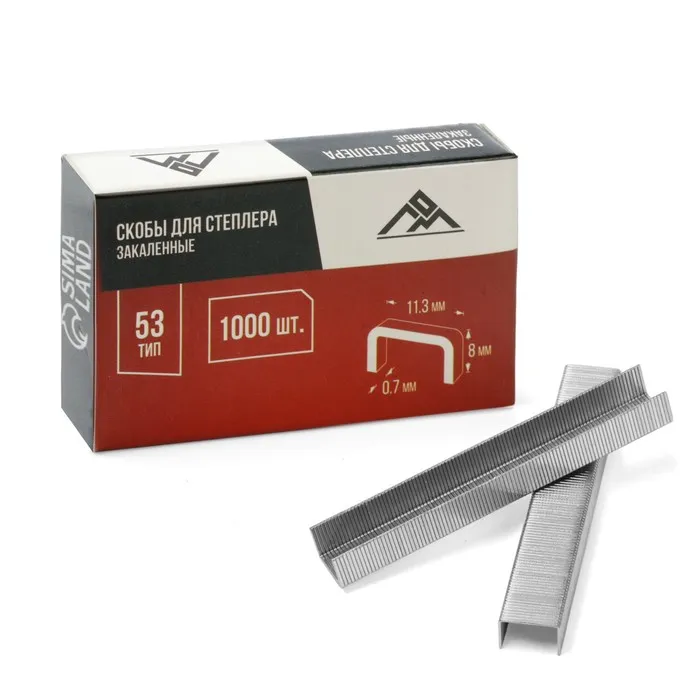 Скобы изготовлены из высокопрочной стали, что обеспечивает их долговечность и устойчивость к коррозии.