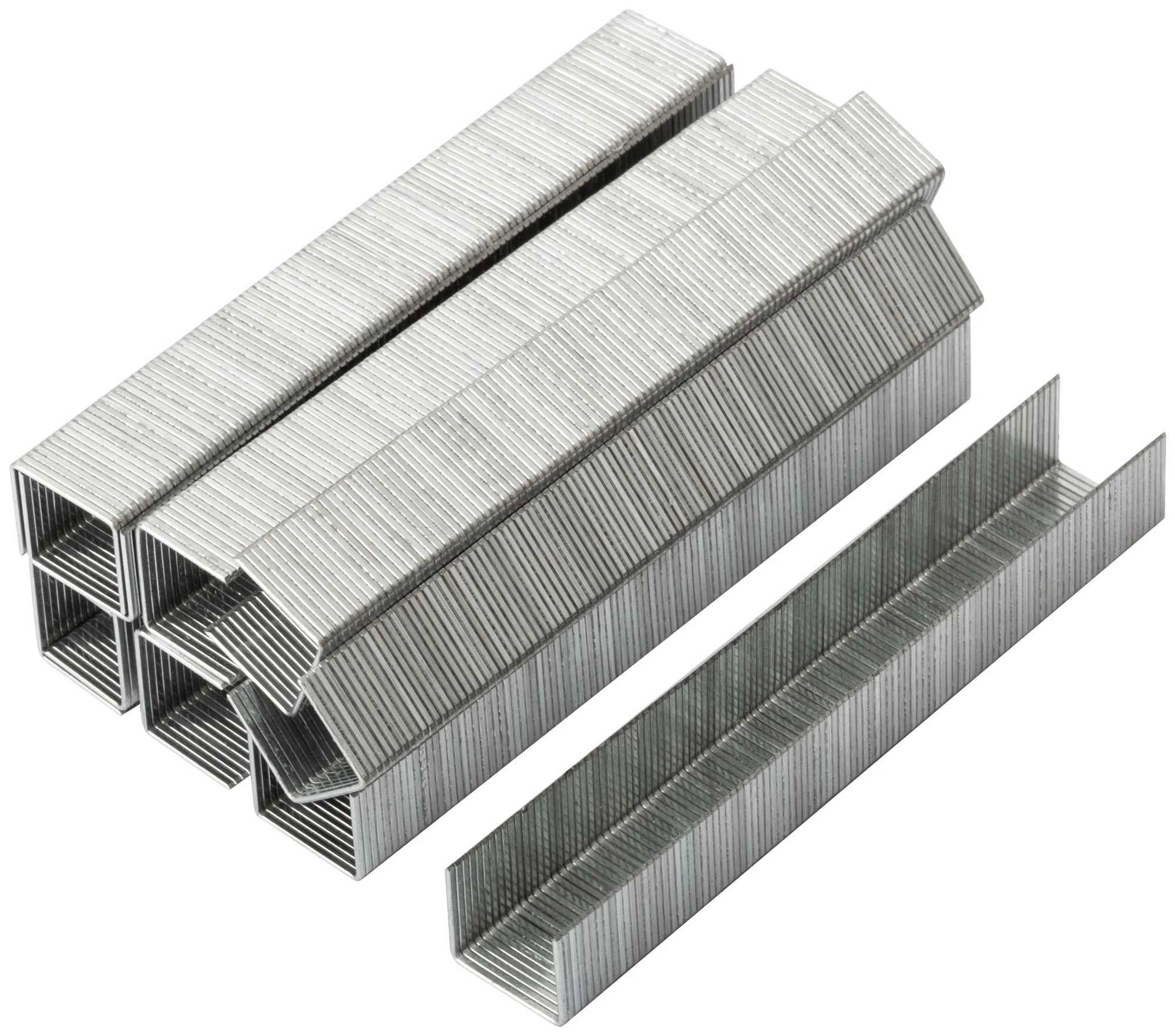 Скобы тип 53 узкие и прямоугольные, что позволяет легко проникать в плотные материалы, обеспечивая надежное крепление. Закалка металла увеличивает их прочность и долговечность.