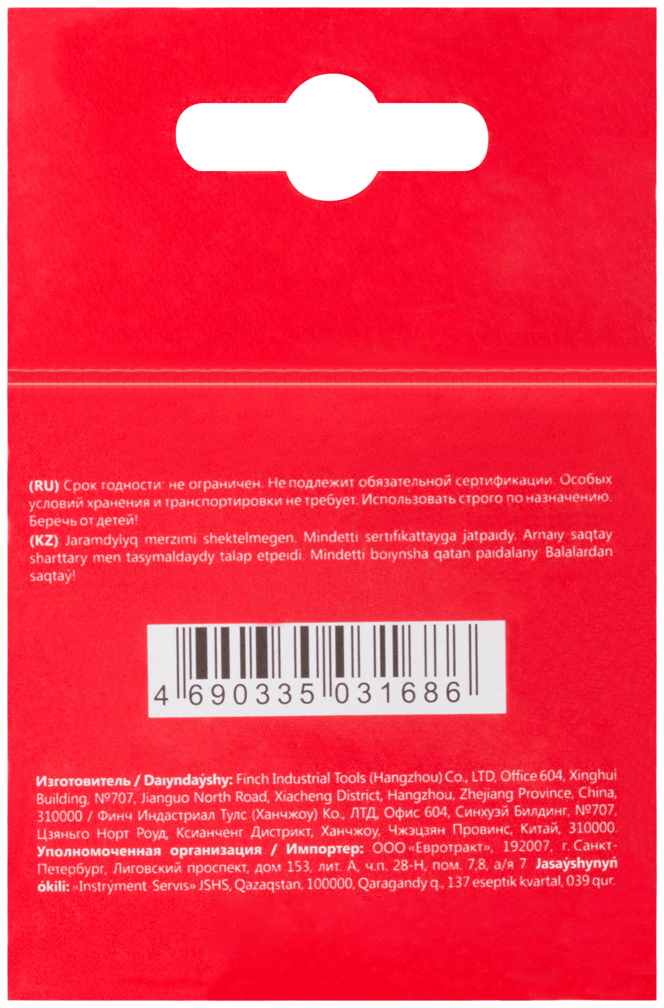 - Удобная упаковка с подвесом — для лёгкого хранения и транспортировки.