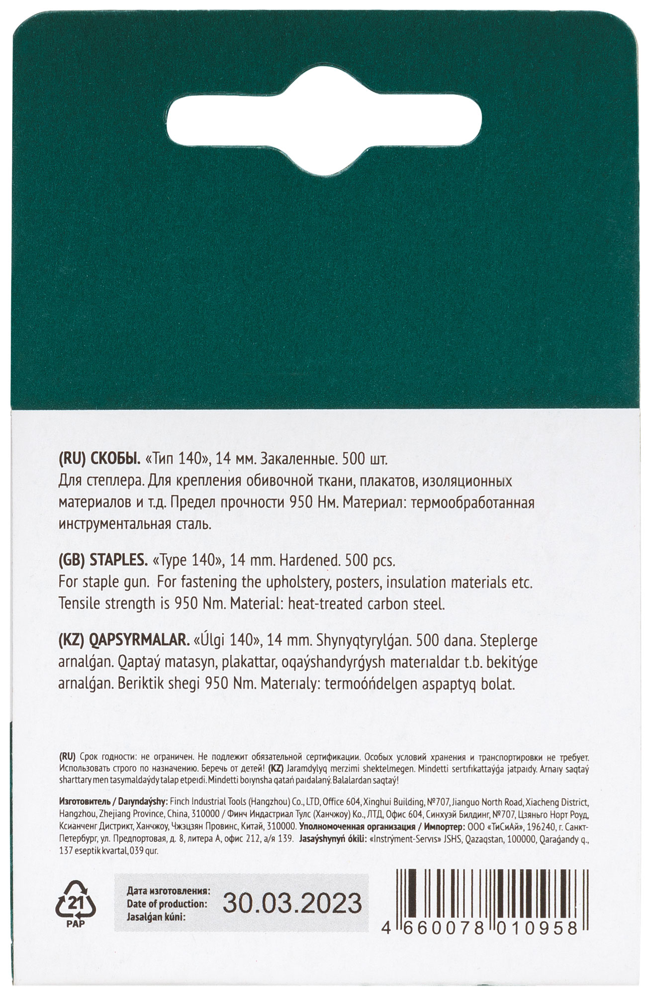 Преимущества скоб FIT включают их прочность и надёжность. Они обеспечивают отличное сцепление, что особенно важно при работе с твёрдыми и плотными материалами. Упаковка содержит 500 штук, что позволяет долго использовать их без необходимости частого пополнения запасов.
