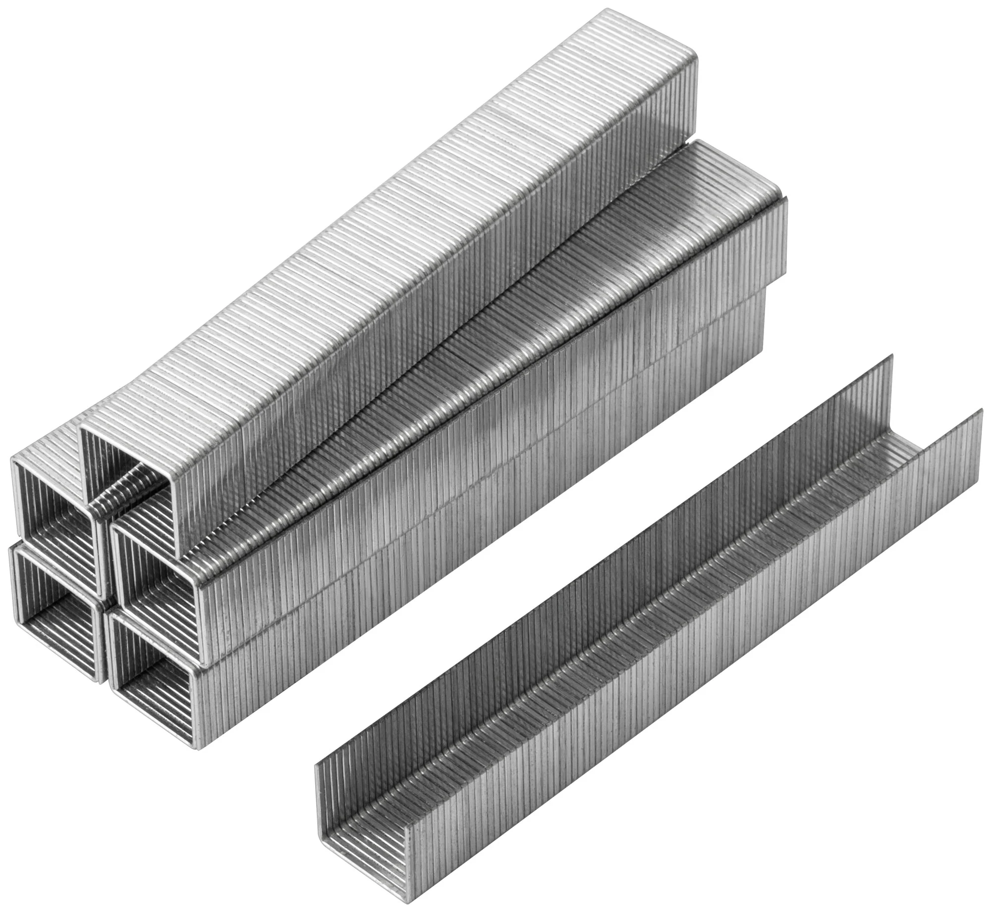 Эти закалённые скобы идеально подходят для использования с профессиональными степлерами в строительных и отделочных работах. Они обеспечивают надёжное крепление материалов, таких как ткань, картон или тонкое дерево, благодаря своим узким прямоугольным формам и прочной закалке.