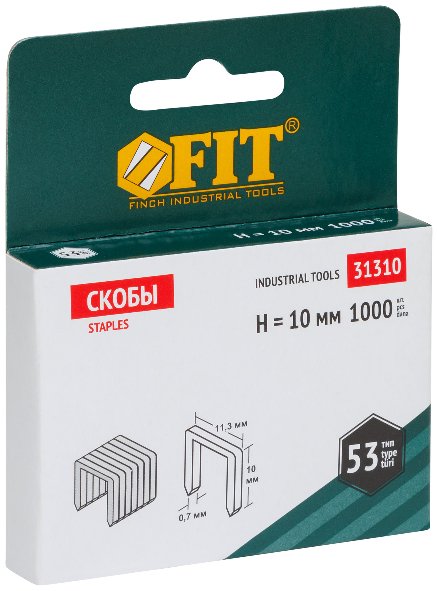 Скобы тип 53 от бренда FIT имеют ширину 11,3 мм, что позволяет использовать их в степлерах, таких как модели 32081, 32084, 32086, и многие другие. Упакованы в коробку с подвесом, что упрощает хранение и транспортировку.