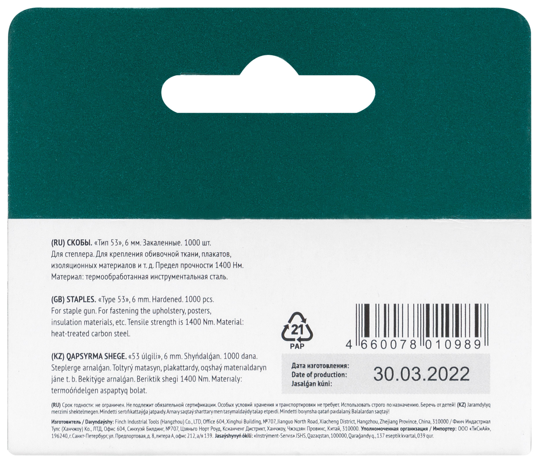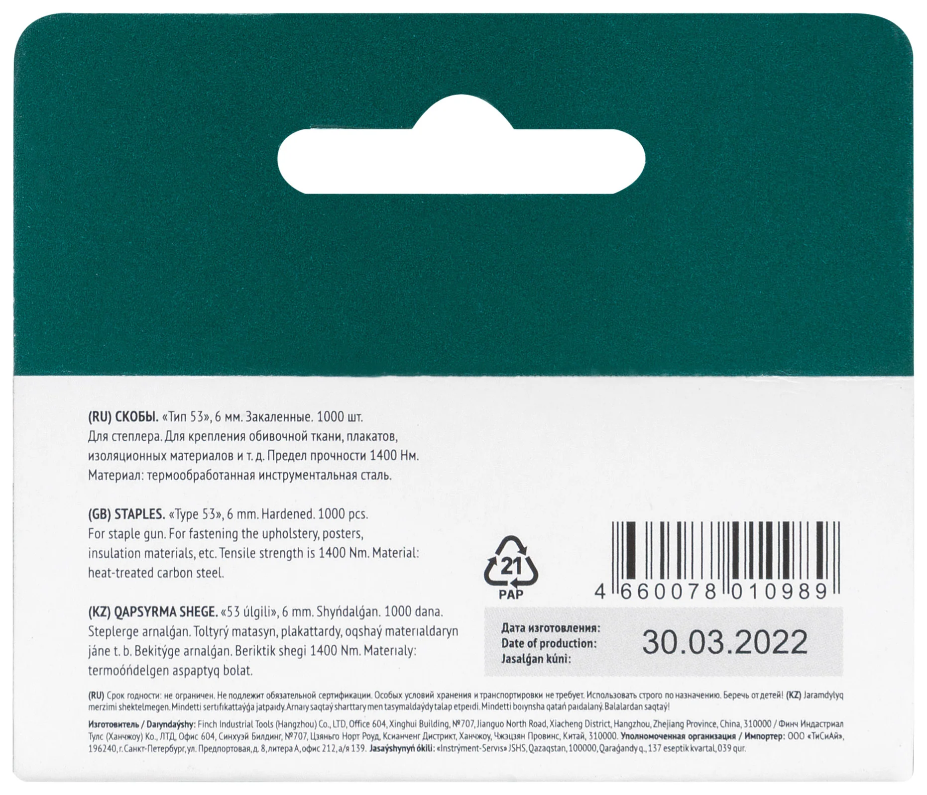 Скобы изготовлены из закалённой стали, что обеспечивает их прочность и долговечность. Стандартный размер 11,3 мм x 0,7 мм позволяет использовать их с большинством степлеров, совместимых с типом 53, таких как модели 32081, 32084, 32086 и другие.