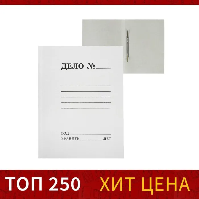 Скоросшиватель Calligrata «Дело», картон немелованный, 220 г/м², белый, пробитый, до 200 листов, МИКС — Характеристики