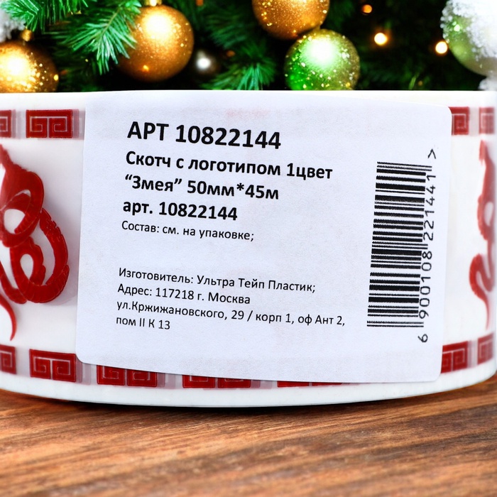 Новогодний скотч с логотипом «Змея» — идеальное решение для тех, кто хочет сделать упаковку своих подарков незабываемой и стильной. Размер скотча составляет 48 мм на 45 метров, а толщина — 45 микрометров, что гарантирует надёжность и прочность упаковки.