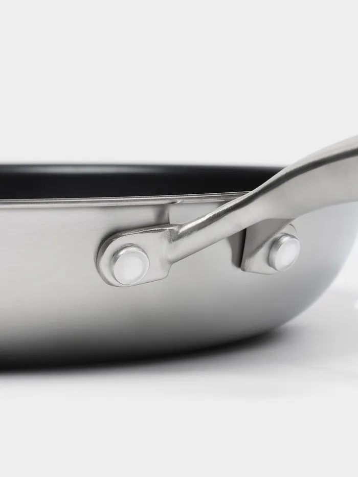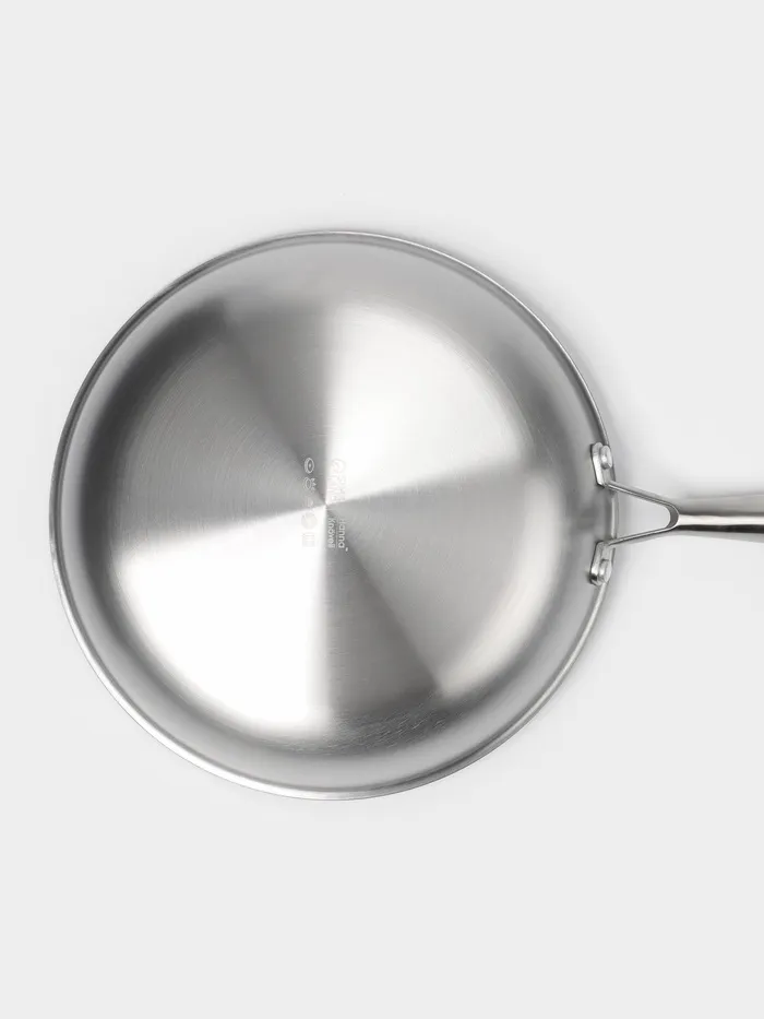 Благодаря технологи 3PLY 3 цельных листа металла объединяются в единую монолитную форму, состоящую из внутреннего слоя нержавеющей стали марки AISI 304, центрального слоя алюминия, и внешенего слоя 430 AISI, что позволяет сковороде работать на любом типе плит, включая индукционные, а также обеспечивает равномерный нагрев и хорошую теплопроводимость, что делает её универсальным инструментом для любой кухни.