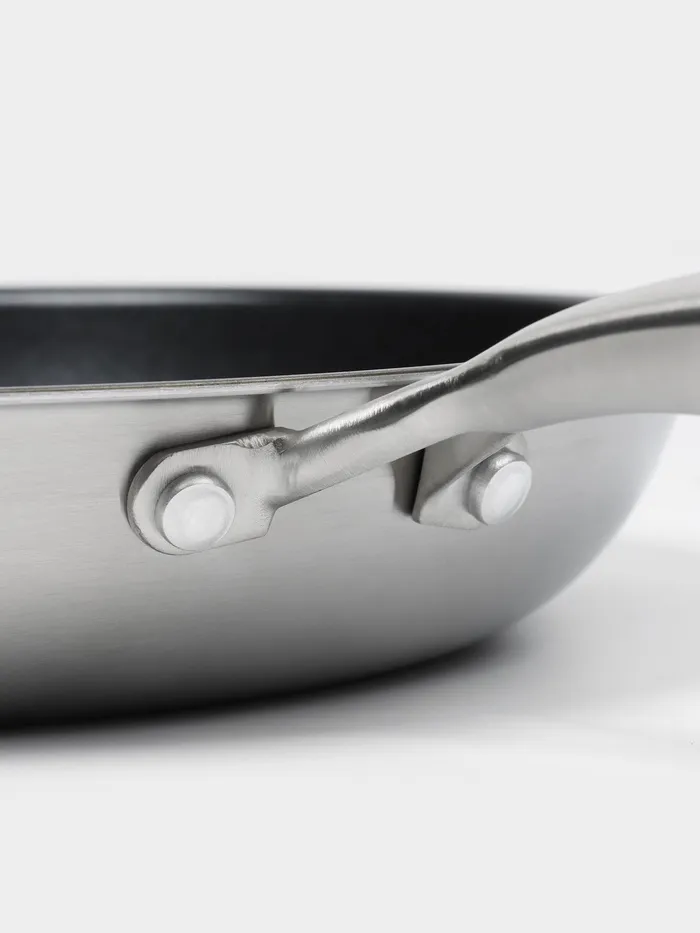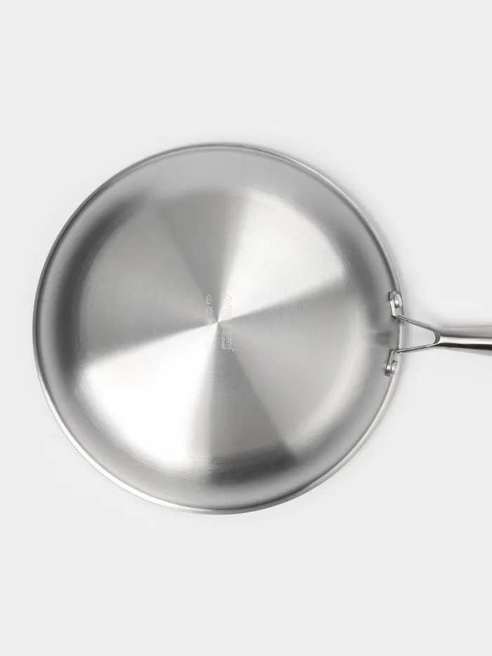 Благодаря технологи 3PLY 3 цельных листа металла объединяются в единую монолитную форму, состоящую из внутреннего слоя нержавеющей стали марки AISI 304, центрального слоя алюминия, и внешенего слоя 430 AISI, что позволяет сковороде работать на любом типе плит, включая индукционные, а также обеспечивает равномерный нагрев и хорошую теплопроводимость, что делает её универсальным инструментом для любой кухни.