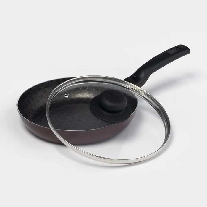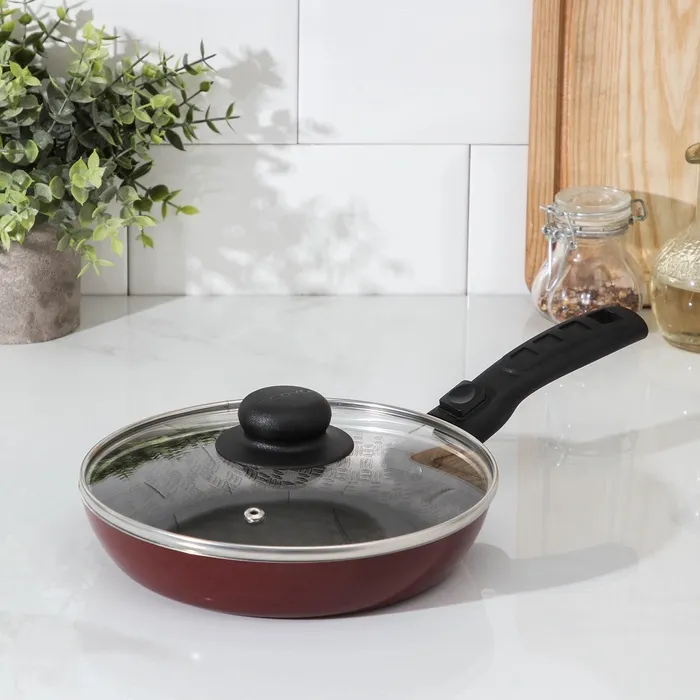 Сковорода «Альфа», d=20 см, съёмная ручка, стеклянная крышка, антипригарное покрытие, алюминий, бордовая — Характеристики