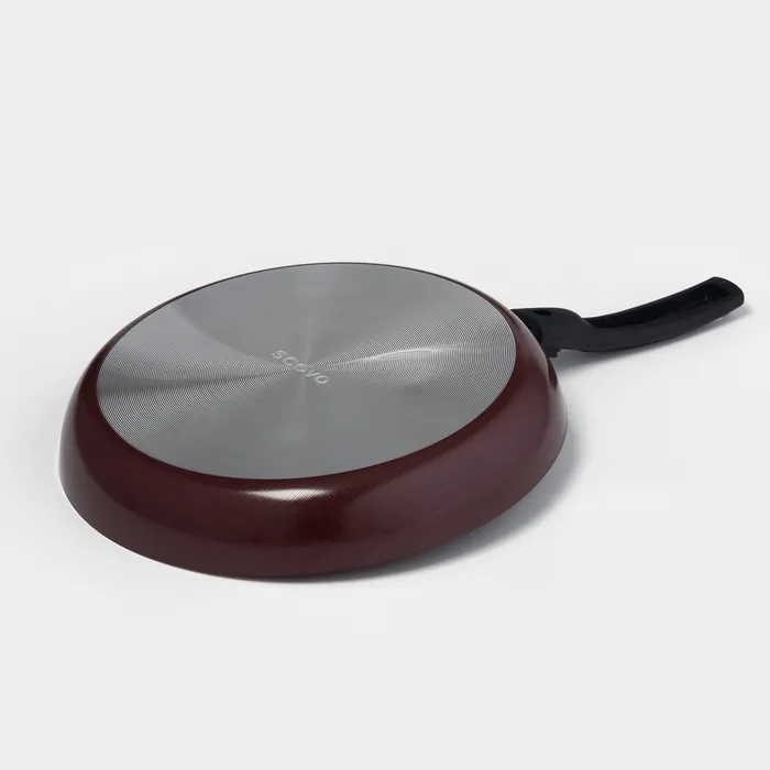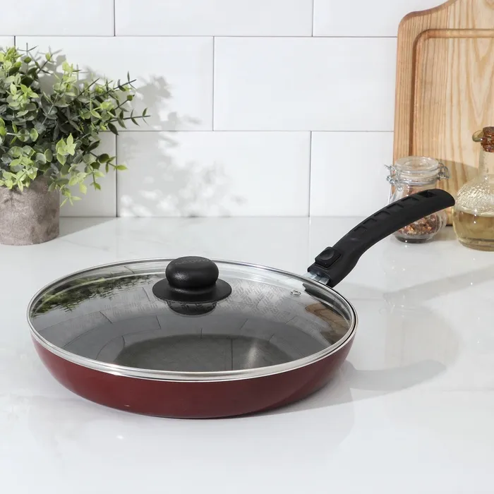 Сковорода «Альфа», d=28 см, съёмная ручка, стеклянная крышка, антипригарное покрытие, алюминий, бордовая — Характеристики