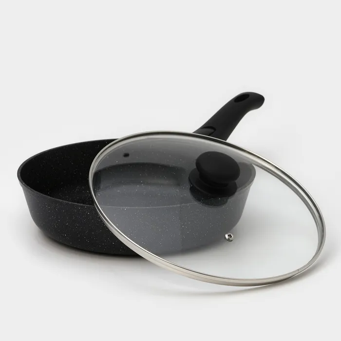 Сковорода алюминиевая Доляна «Элит», d=26 см, съёмная ручка, стеклянная крышка, антипригарное покрытие — Характеристики