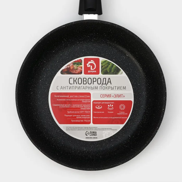 Продукция Доляна изготовлена из литого алюминия и покрыта высококачественным антипригарным покрытием на водной основе, усиленным сверхпрочными минеральными частицами.