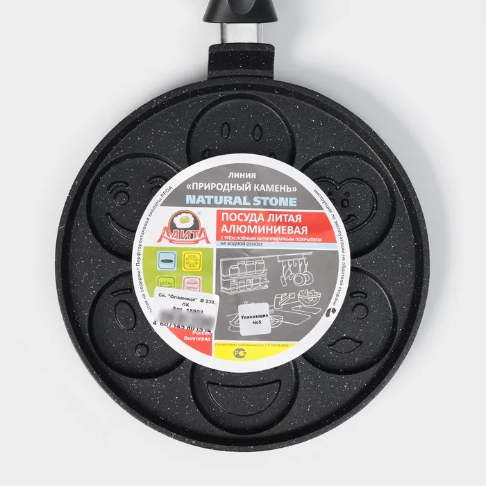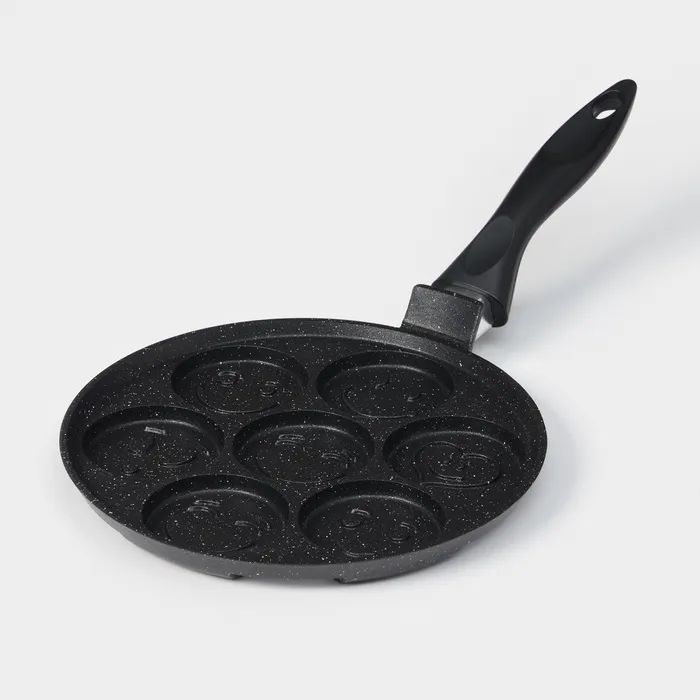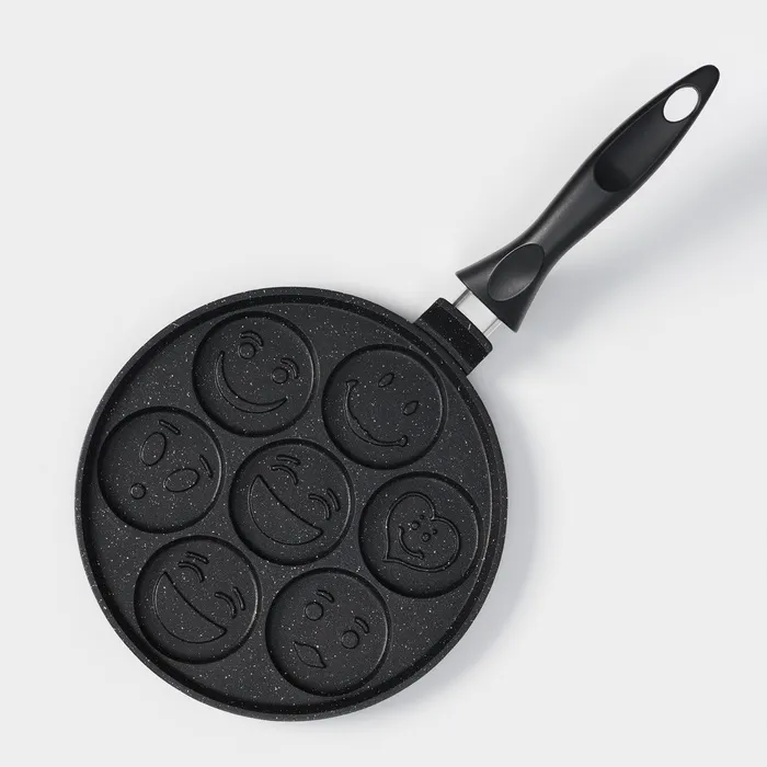 Сковорода алюминиевая «Оладница», d=23 см, пластиковая ручка, антипригарное покрытие, цвет чёрный — Характеристики