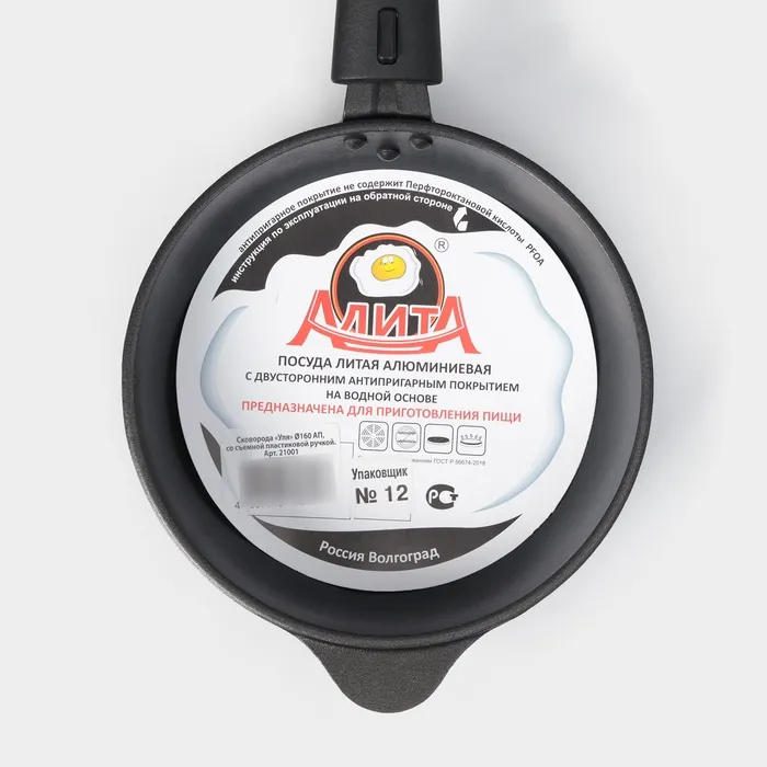 Сковорода алюминиевая «Уля», d=16 см, съёмная ручка, антипригарное покрытие, цвет черный металик — Характеристики