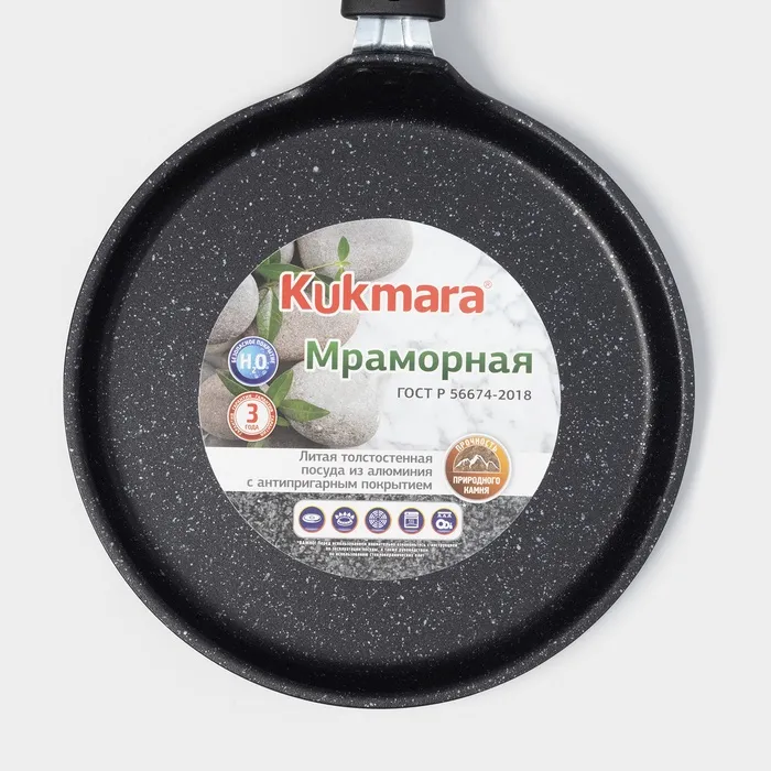 Сковорода блинная, d=22 см, пластиковая ручка, антипригарное покрытие, цвет тёмный мрамор — Характеристики