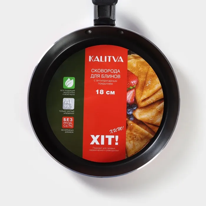 Сковорода блинная «Хит», d=18 см, пластиковая ручка, антипригарное покрытие, алюминий, чёрная — Характеристики
