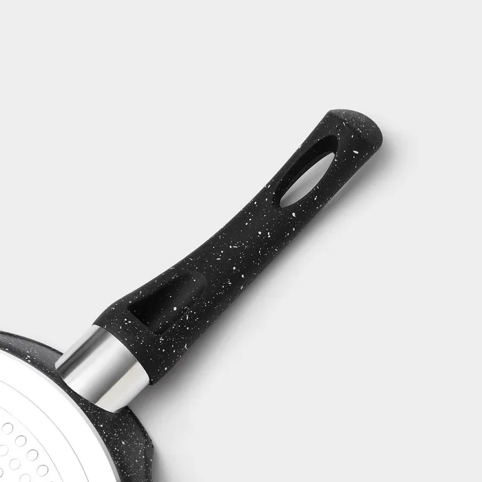 Сковорода Magistro серии Dark изготовлена из кованого алюминия и имеет сверхпрочное антипригарное покрытие, усиленное частичками мрамора. Покрытие полностью безопасно для здоровья, не содержит PFOA и других вредных веществ. В такой сковороде удобно жарить блины, оладьи, панкейки. Благодаря надежному антипригарному покрытию на сковороде можно готовить с минимальным количеством масла: продукты не прилипнут, не подгорят.