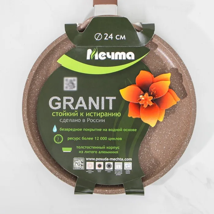 Сковорода блинная Мечта «Гранит Brown», d=24 см, пластиковая ручка, антипригарное покрытие, литой алюминий, коричневая — Характеристики