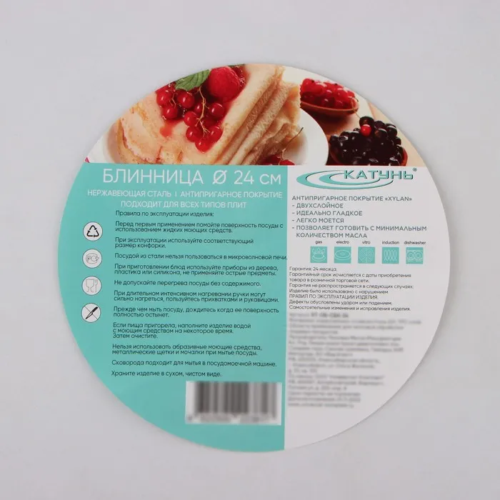 Сковорода блинная «Общепит», d=24 см, толщина стенок 0.6 мм, дно ТРС 3.5 мм, индукция, нержавеющая сталь — Характеристики