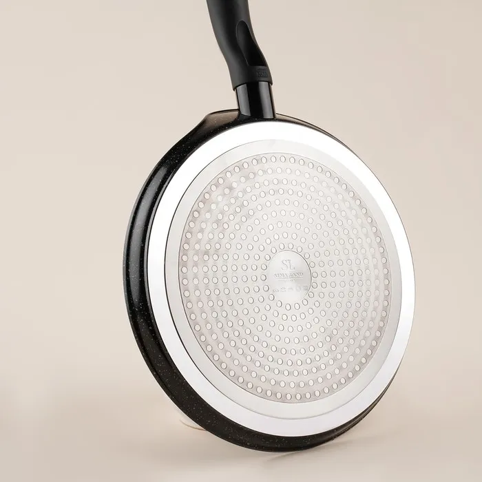 - Универсальность: совместимость с любыми типами плит, включая индукционные, позволяет использовать сковороду в любых условиях.