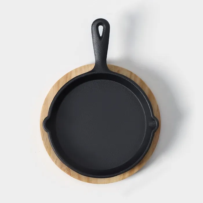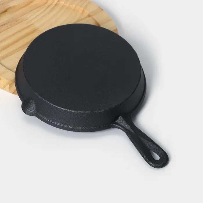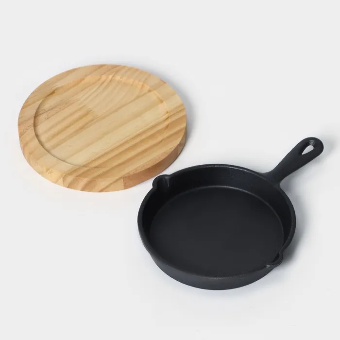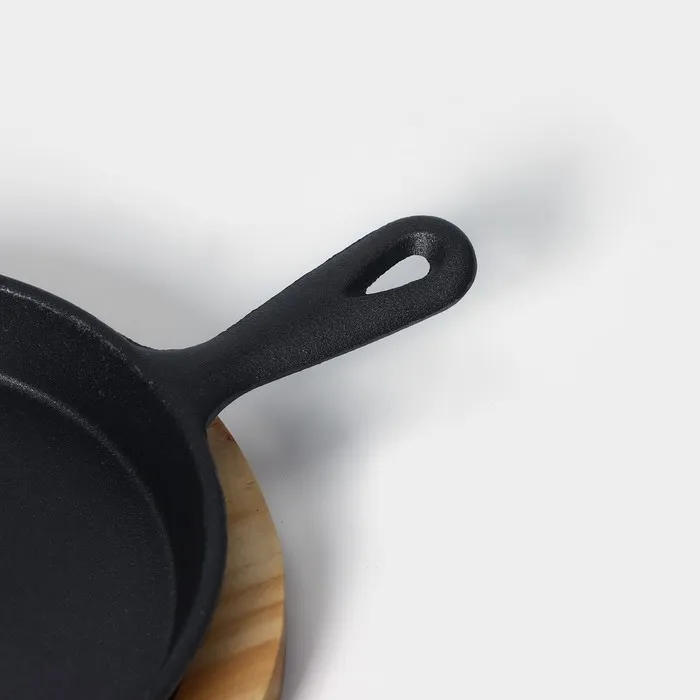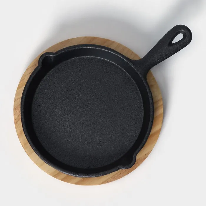 Сковорода чугунная «Авиньон», 21.5×15.5×2.5 см, с 2 сливами, на деревянной подставке — Характеристики