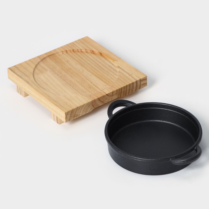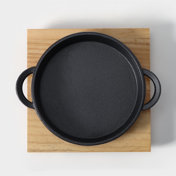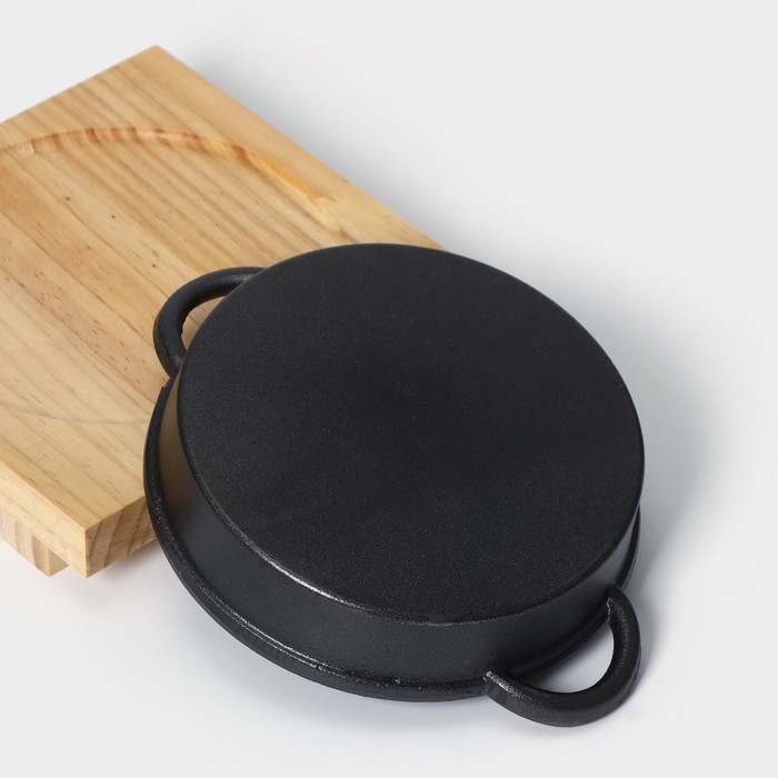 Сковорода чугунная «Круг высокий с ручками», d=18 см, на деревянной подставке — Характеристики