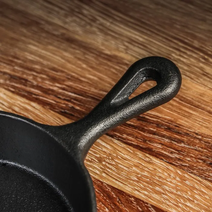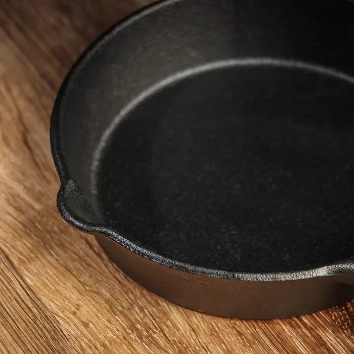 Можно прокалить сковороду с помощью масла. Желательно первое прокаливание производить на открытом воздухе, если нет такой возможности, то производить прокал чугунной посуды рекомендуем с открытыми форточками и включенной вытяжкой. Если она абсолютно новая, то помойте ее теплой водой с хозяйственным мылом и поставьте на печку разогреть. По запаху вы определите, что пора ее убрать с плиты. Обычно это происходит через 10-15 минут. Иногда запах настолько сильный, что приходится открывать форточку. После этого надо налить на сковородку немного масла и опять ее разогреть. Масло образует антипригарное покрытие, поскольку проникнет глубоко в поры чугуна. Это покрытие надежнее и лучше любого тефлонового. Вы можете спокойно жарить любые блюда и не бояться, что продукты прилипнут. Пеките блины, поджаривайте мясо, готовьте овощи – что угодно. Только никогда не мойте чугунную сковороду абразивными порошками или щетками, не применяйте к ней едкие моющие вещества. Если сделаете это, то придется прокаливать посуду заново.